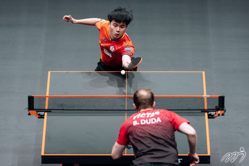 China's LIN Gaoyuan takes on Germany's Benedikt Duda in the men's singles at the WTT Finals Hong Kong 2025.