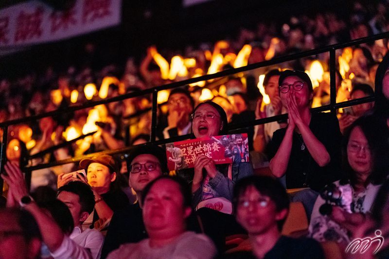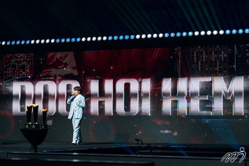 Hong Kong, China's DOO Hoi Kem performs before the final at the WTT Finals Hong Kong 2025, igniting the Hong Kong Coliseum atmosphere with dazzling lights and earning roaring cheers from the crowd.