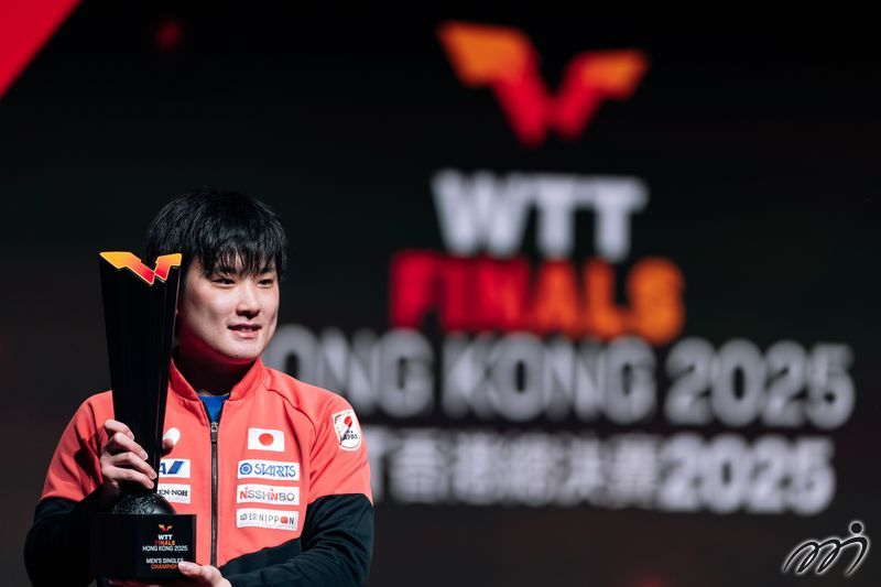 WTT Finals Hong Kong 2025 men's singles champion Tomokazu Harimoto claims victory on stage, etching a legendary moment.
