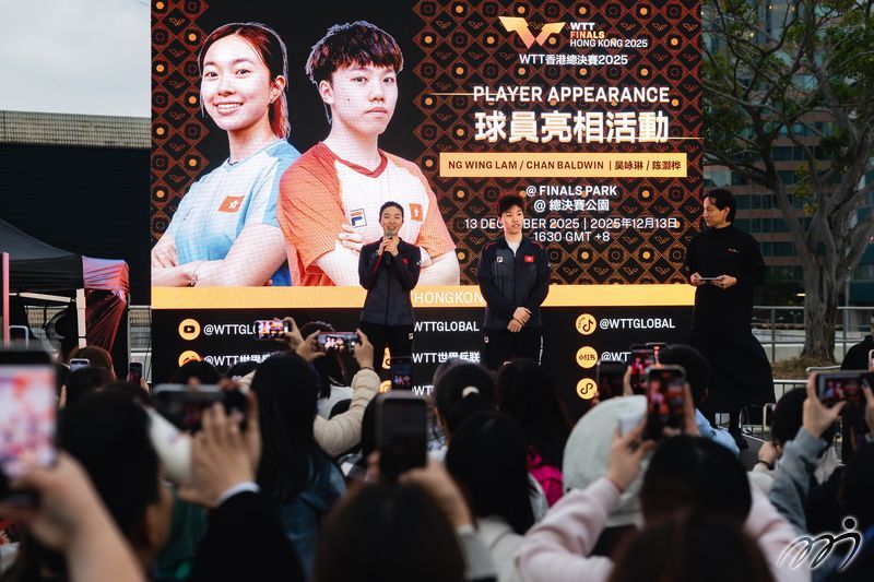Hong Kong, China's table tennis representatives NG Wing Lam and Baldwin CHAN make an appearance at the WTT Finals Park.