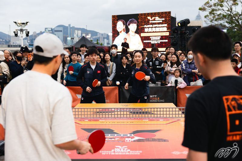 During the WTT Finals Hong Kong 2025 community program, students had the opportunity to engage in friendly exchanges with representatives of the Hong Kong table tennis team.